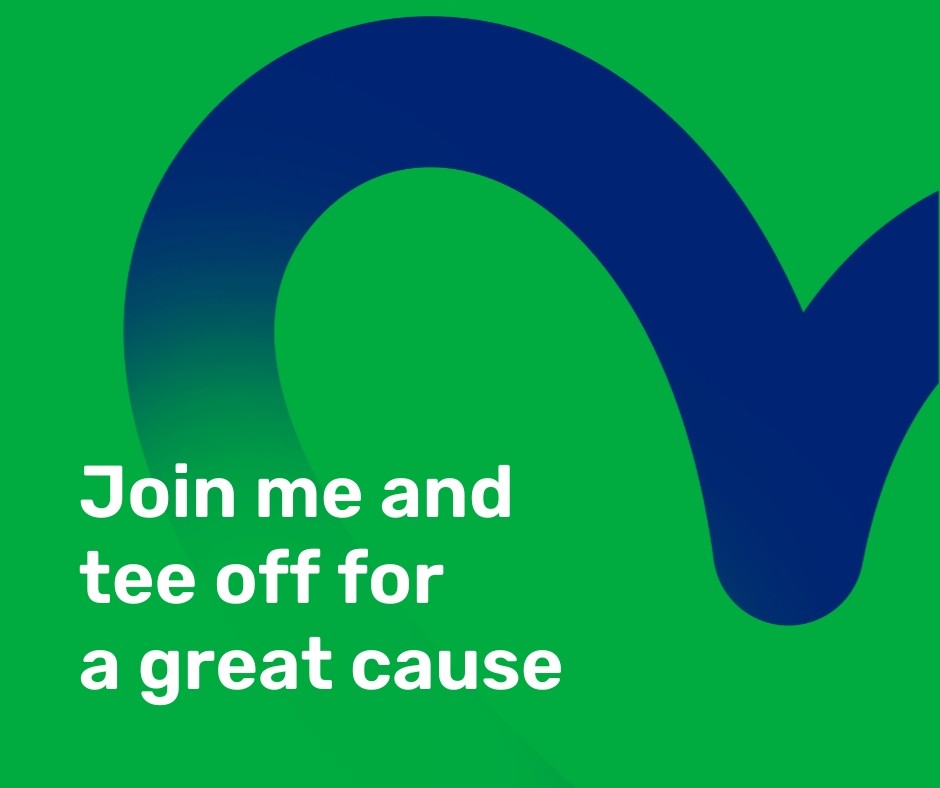 a social tile with a green background and text that says Join me and tee off for a great cause